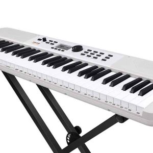 Equipado com 61 teclas tipo piano, 300 sons diferentes, 300 ritmos de acompanhamento e 80 músicas demo, este teclado permite ao usuário tocar diversos gêneros musicais enquanto se diverte.