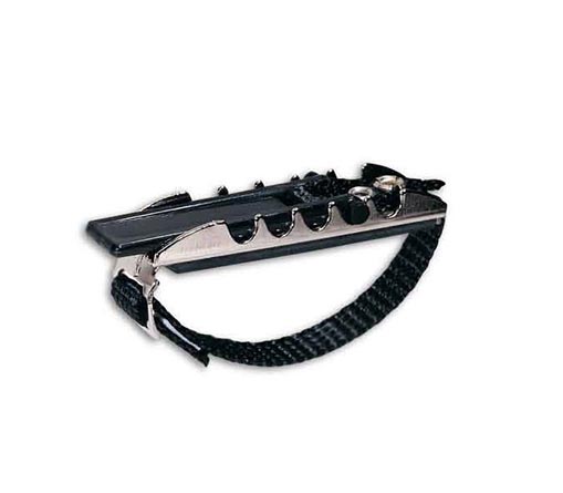 Esta versão do Trigger Fly Capo apresenta um design de raio plano com uma mola personalizada de baixa tensão que funciona perfeitamente com Guitarras clássicas de cordas de náilon, Guitarras flamencas e instrumentos semelhantes.